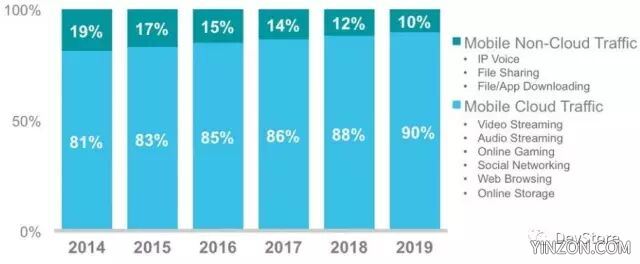 Google Drive, Dropbox, 和 OneDrive 只是冰山一角。思科的一项研究表明,全球范围内,到 2019 年,云应用带来的流量将占移动数据总流量的 90%,移动云流量将达到 11 倍,复合年增长率(CAGR)为 60%。