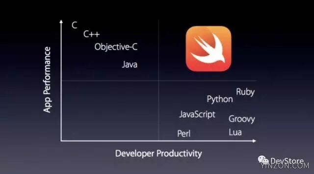 下图展示了 Swift 在其他编程语言中的领先地位:
